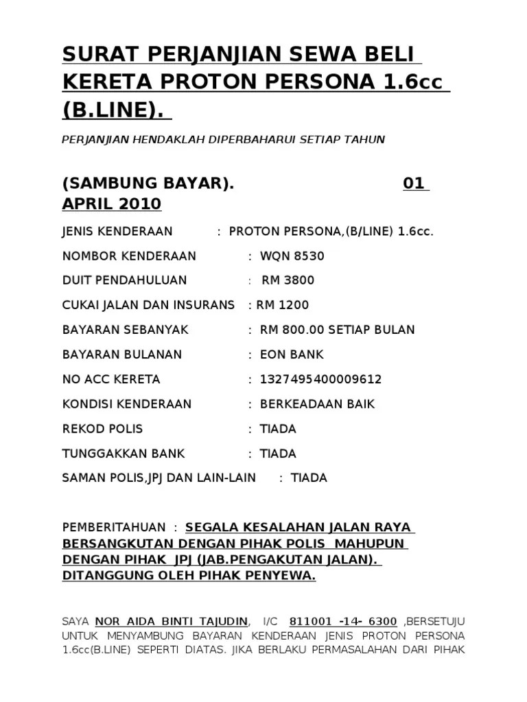 Surat perjanjian jual beli kereta bahawasanya surat perjanjian ini diperbuat pada 31 mac 2013 (ahad) antaraa abdullah bin yahya, no. Semua kos pindah milik nama kenderaan ini adalah tanggungjawab pihak kedua, tidak melibatkan pihak pertama. Surat perjanjian jual beli kereta. Contoh surat akuan jual beli kereta have a graphic associated with the other.contoh surat akuan jual beli kereta in addition, it will feature a picture of a sort that might be observed in the gallery of contoh surat akuan jual beli kereta. 27% found this document not useful, mark this document as not useful. Sebab itu ada ebook khas untuk penyediaan surat perjanjian ini. Sebab itu ada ebook khas untuk penyediaan surat perjanjian ini. 01/07/2019 · beberapa contoh surat akuan jual beli kereta yang baik dan benar 2019. The collection that consisting of chosen picture and the best amongst others. Save surat perjanjian jual beli kereta a for later. Surat perjanjian jual beli kereta kaedah sambung bayar. Dalam tempoh proses pindahmilik, sekiranya berlaku sebarang masalah adalah menjadi tanggungjawab pihak kedua tiada kena mengena dengan pihak pertama. Entah itu surat perjanjian tentang jual beli tanah sewa menyewa meminjam uang dan lain lain.